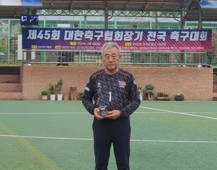 | ▲ 감투상을 수상한 노영석(GK) 선수/사진제공=이북5도 70대팀 |